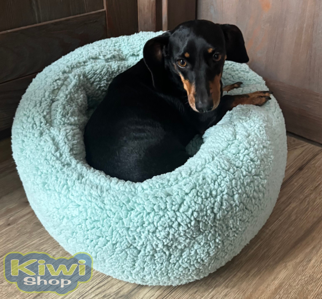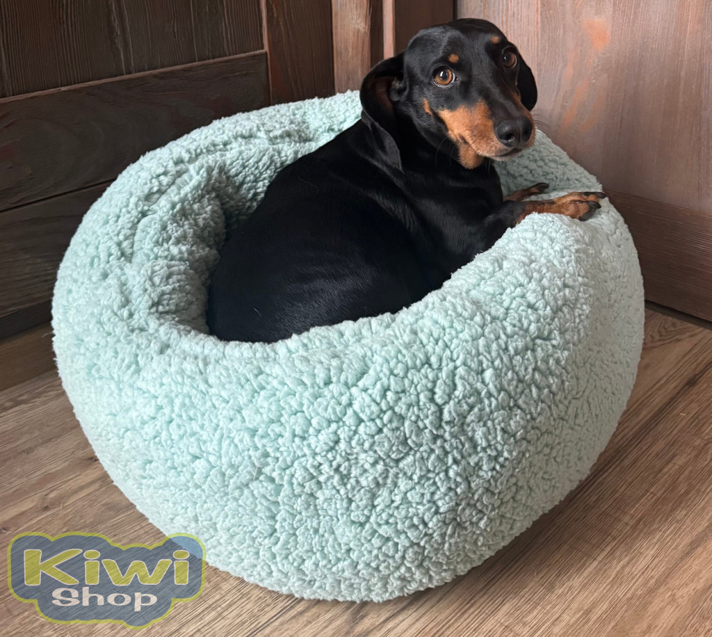 Ez a fánk fekhely ez csodálatos menta színű extrán meleg sherpa anyagból készült. Kistestű kutyusoknak ajánljuk 5kg-ig.